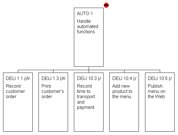 This new root function can now be used as the parent of functions that already exist on the diagram. To do this, you drag the child functions and drop them onto the root function. It is important when doing this that you position the mouse pointer precisely in the centre of the root function before releasing the mouse button. Otherwise, the moved function will become another root function. The mouse pointer changes shape to help with this.